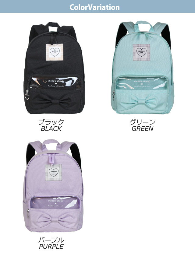 商品詳細 商品名 POP PARLOR クリアビッグリボン リュックサック 商品番号 wxl-614 素 材 ポリキャンバス カラー 3色(ブラック・パープル・グリーン) サイズ 約W26×H37×D12cm 重量 約329g/約12L 仕様 フロントマチ付きファスナーポケット(クリア窓) サイドポケット×2 本体内側吊りポケット付き ショルダーベルト長さ調節可能(約40〜70cm) 背面メイン直結ファスナー 背面・ベルト裏メッシュ素材 撥水加工 お祝いやイベントギフト・季節の贈り物に お誕生日 birthday バースデー xmas クリスマス Christmas 御祝い プレゼント 入学祝い 進学祝い 合格祝い ギフト ホワイトデー whiteday 春財布 こどもの日 アイテム名 リュック リュックサック デイバッグ デイバック デイパック バック バッグ かばん カバン 鞄 パック Dバッグ Dパック ディパック バックパック 対 象 女の子 女子 女児 小学生 小学校 低学年 高学年 キッズ 子供用 ジュニア ガールズ 幼稚園 保育園 園児 幼児 ティーン トドラー 小1 小2 小3 小4 用 途 通学 遠足 デイリー 旅行 お出かけ レジャー スポーツ アウトドア キャンプ 部活 修学旅行 林間学校 合宿 通園 野外活動 通塾 習い事 塾通い イメージ・その他 おしゃれ かわいい お洒落 おすすめ 人気 通販 可愛い ガール girl a4サイズ収納 原宿 韓国 ハート はーと パステルカラー パープル 紫 黒 ブラック グリーン 緑 ミント 透明 クリア りぼん リボン シンプル 撥水 はっ水 a4 誕生日プレゼント クリスマスプレゼント 【リュック 女の子 小学生 おしゃれ】【小学生 リュック 女の子】【ジュニア 女の子 リュック 遠足】【リュック 小学生 高学年 女の子】【かわいい リュック 小学生】・POP PARLOR クリアビッグリボンシリーズ フロントのビッグリボンが可愛いリュックサック。