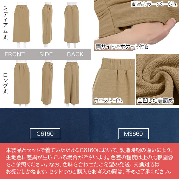 選べる2丈ウエストゴムぽこぽこカットソーナロースカート [M3669] レディース レタスオリジナルサイズ タイトスカート ボトムス きれいめ リラックス カジュアル 着回し デイリー オフィス 大人 黒 ロングスカート 上品 万能