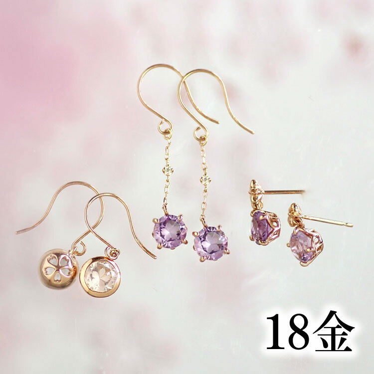 さくらインカット 桜色の天然石 ピアス 18K ピンクゴールド レディース・トワザクラ ローズクォーツ ローズアメジスト フックピアス 揺れるピアス スタッドピアス 可愛い K18 18金 誕生日プレゼント 女性 花 春 2月誕生石 モチーフ ブランド SNS掲載 ピンク 色石