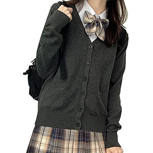 カーディガン スクール Vカーディガン学生服 スクールセーター 防寒 無地 レディース ニット通勤 通学 アウター シンプル 上着 (ダークグレー, M)